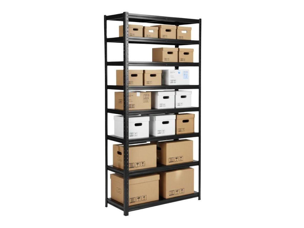 A nyolc robusztus polc mindegyike biztonságosan elbír 120 kg-ot. Ideális nehéz anyagokhoz, alkatrészekhez vagy terjedelmes céges archívumokhoz.