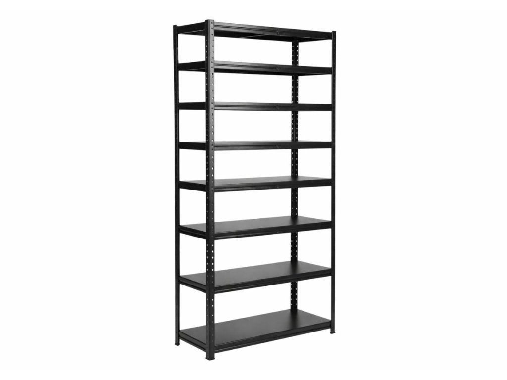 Lakkozott, fémből készült állvány Mamutex Standard 2800x800x400 mm - 8 polc, teherbírás 960 kg, fekete
