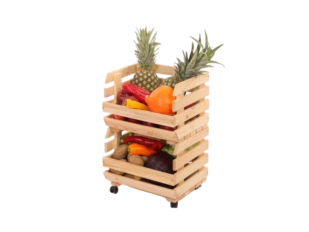 Tartsa ételeit hosszabb ideig frissen és stílusosan rendezve. Ez a praktikus, tömör fenyőből készült polc két tágas dobozzal ideális megoldás zöldségek és gyümölcsök tárolására. Alacsonyabb magasságának köszönhetően nem csak a kamra padlójára, hanem közvetlenül a konyhapultra is ideális, ahol azonnal elérhető lesz minden, amire szüksége van.