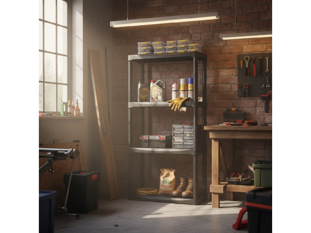 Szeretnéd praktikusan megoldani a műhelyed, garázsod vagy pincéd elrendezését? Ez a polipropilénből készült műanyag polc 4 polcot kínál, teljes magassága 133 cm. Mosható, nem szívja magába a szagokat és a nedvességet, és szerszámok nélkül, néhány perc alatt összeszerelhető.