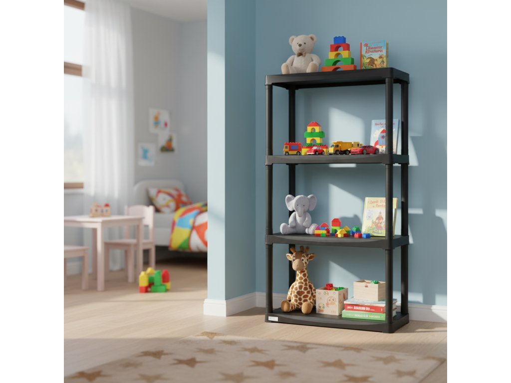 Egy egyszerű polcot kerestem a gyerekszobába, amin játékok és könyvek férnének. Ez a műanyag polc könnyű, biztonságos, és bármikor áthelyezhetem vagy átrendezhetem.