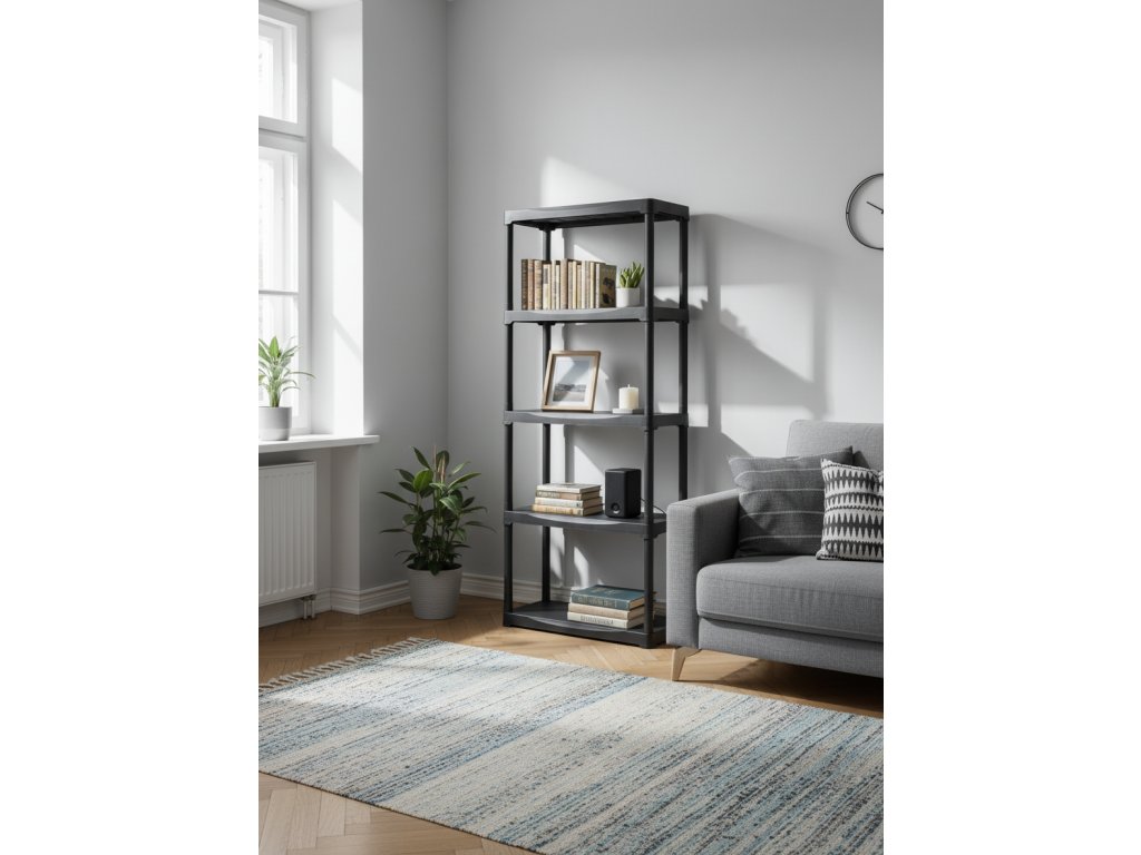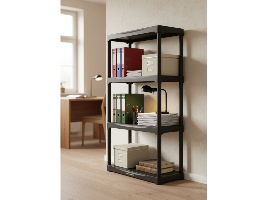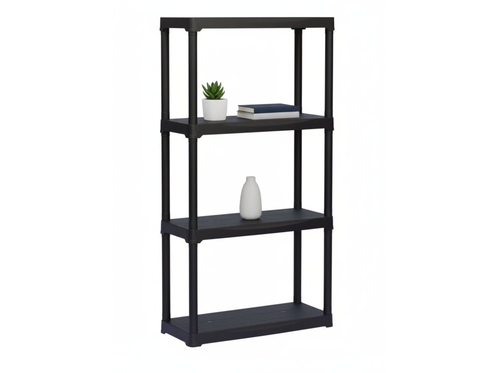 A fekete műanyag polc könnyű, mégis stabil. Az okos kattintásos rendszernek köszönhetően gyorsan összeszerelhető és könnyen karbantartható. Alkalmas háztartási és műszaki helyiségekbe egyaránt, ahol értékelni fogja nedvességállóságát és egyszerű tisztíthatóságát.