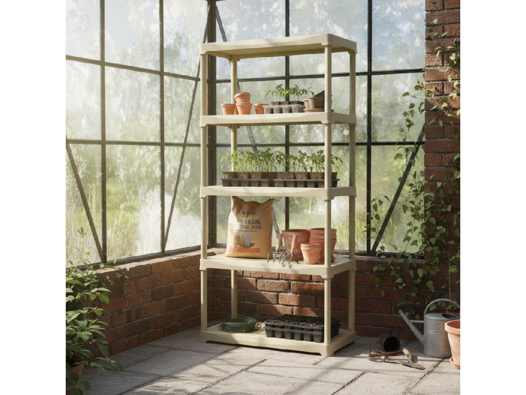 Műanyag polc Mamutex 1760x800x400 mm - 5 polc, teherbírás 150 kg, bézs