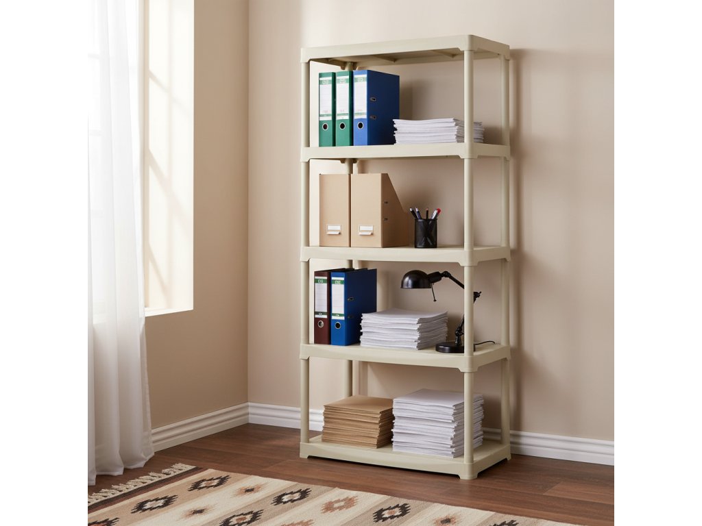 Tágas és praktikus tárolóállványra van szüksége, amely otthonra is alkalmas? Ez a 176x80x40 cm-es műanyag állvány bézs színben, 5 polccal rendelkezik, teljes teherbírása 150 kg. Világos árnyalatának köszönhetően elegánsnak tűnik, és akár mosókonyha, kamra vagy gyerekszoba belsejébe is illik.