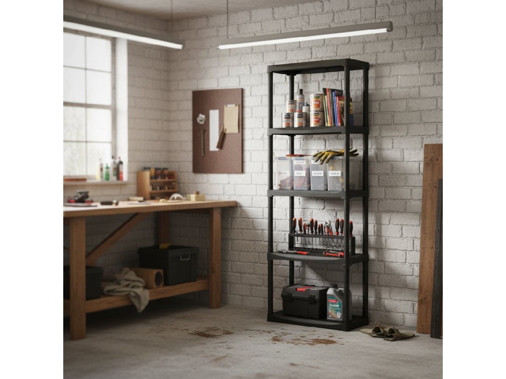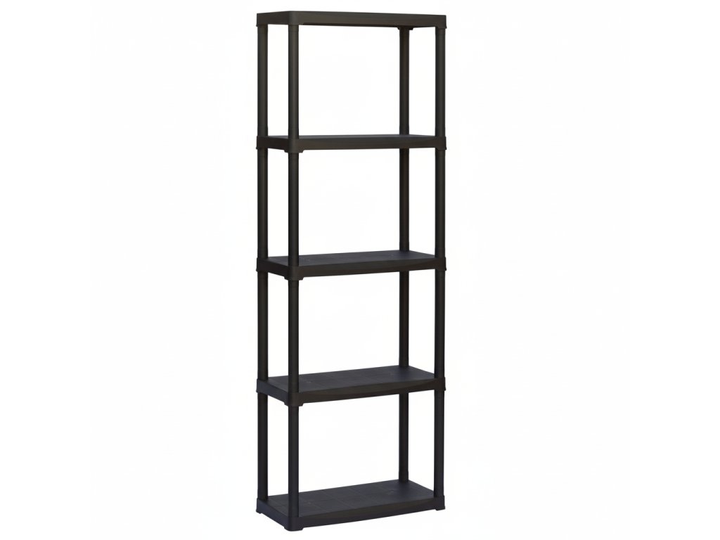 Megbízható és tartós megoldást keres élelmiszerek, dobozok vagy szerszámok tárolására? Ez a 176x60x30 cm-es műanyag állvány 5 polccal rendelkezik, teljes teherbírása 100 kg. Fekete színének köszönhetően elegánsnak tűnik, és alkalmas pincébe, műhelybe és otthonra is.