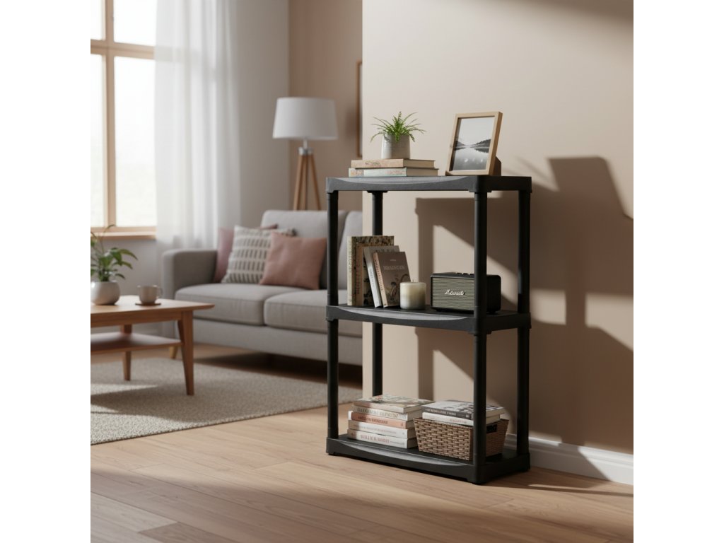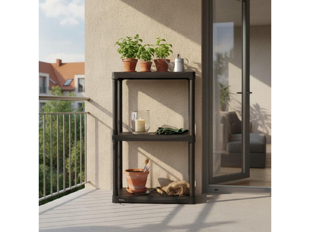 A műanyag konstrukció rozsdaálló és könnyen tisztítható, így alkalmas pincékbe, kamrákba vagy garázsokba.
