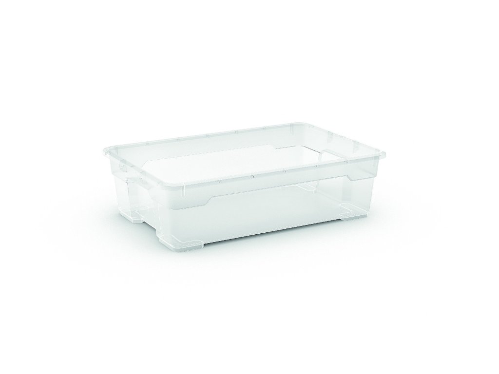 A 30 literes CLEAR M műanyag doboz ideális megoldás azok számára, akik rendet szeretnének tartani és a lehető legjobban kihasználni a rendelkezésre álló teret. Mindössze 16 cm- es magasságának köszönhetően kényelmesen elfér az ágy alatt, a szekrényben vagy egy polcon. Az átlátszó falak lehetővé teszik a tárolt tartalom azonnali áttekintését, és a keresett dolgok könnyű megtalálását. 56,5 x 38 x 16 cm -es méreteivel dokumentumokat, kiegészítőket, textíliákat és játékokat is tárolhat benne.