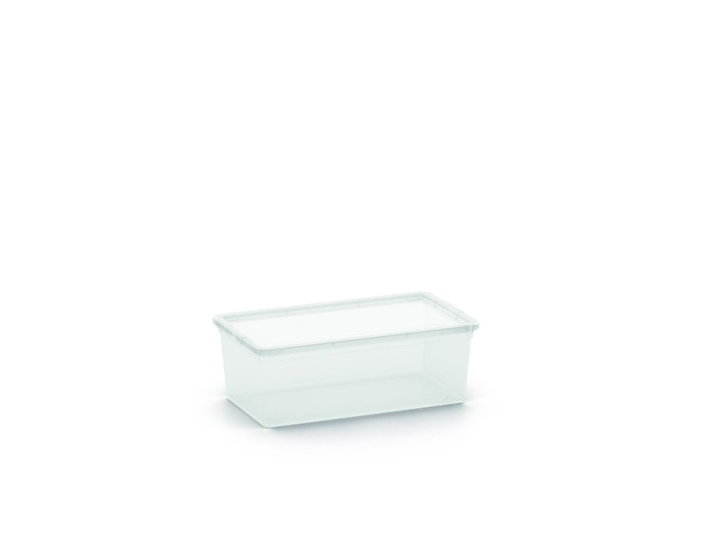 A HOME XS, 6 l-es műanyag doboz egy kicsi, de rendkívül praktikus segítőtárs a háztartás rendben tartásához. 34 x 19 x 12 cm- es méreteinek köszönhetően bárhová elfér - fiókban, polcon, szekrényben vagy fürdőszobaszekrényben. Ideális kozmetikumok, irodaszerek, apró kiegészítők vagy varrókellékek tárolására. Az átlátszó kialakításnak köszönhetően azonnal láthatja, mi van benne, a fedél pedig biztosítja, hogy minden tiszta és védett maradjon.