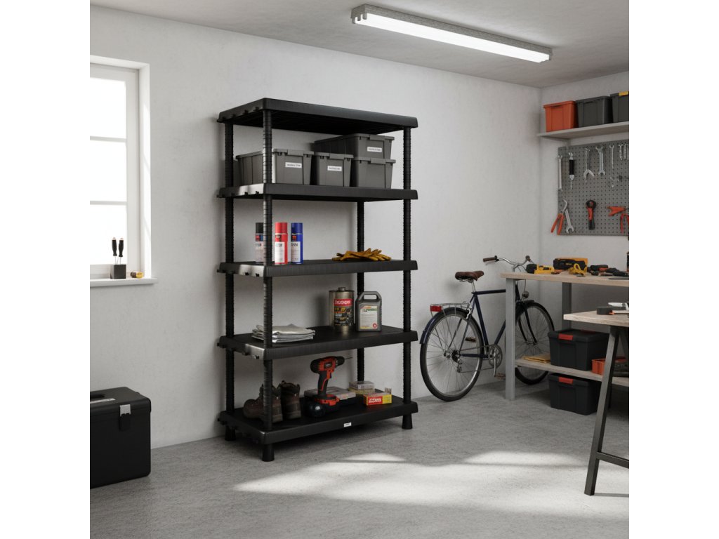 Műanyag polc Mamutex VARIO 1645x920x450 mm - 5 polc, teherbírás 250 kg, fekete